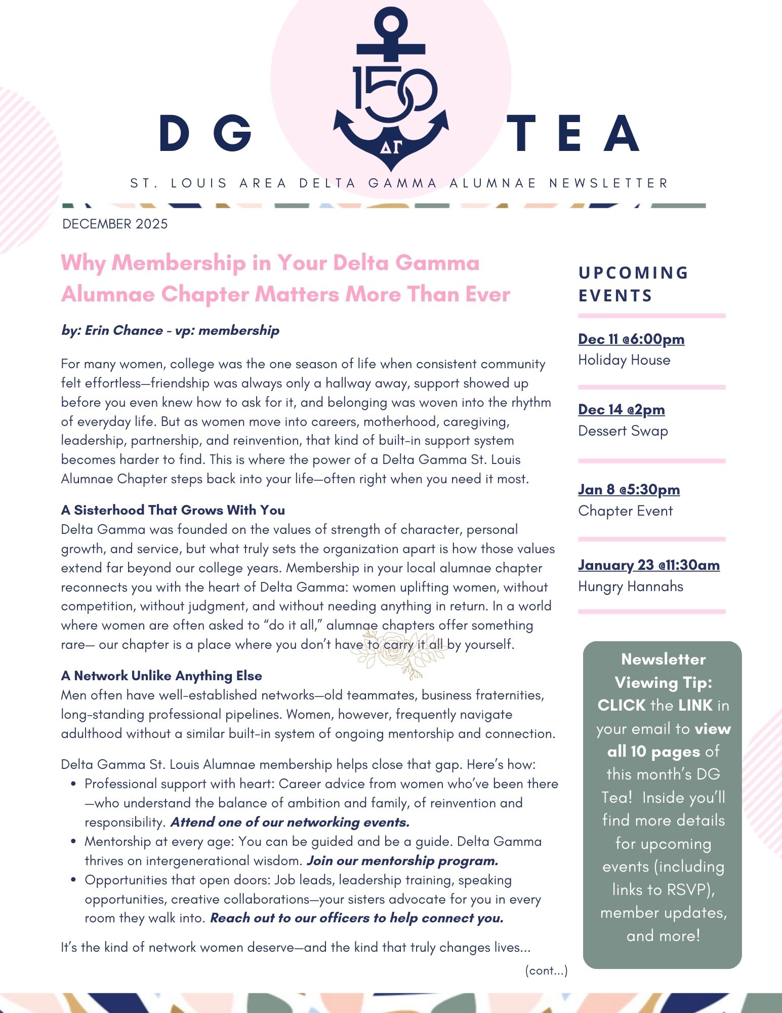 Miss out on the last Delta Gamma Monthly Newsletter? Check out our Archive below!